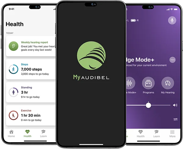 İşitme cihazlarındaki atalet sensörleri, My Audibel uygulamasıyla bir araya gelerek kulak bilimini kullanarak adım saymanıza, sosyal etkileşiminizi takip etmenize, dengenizi güçlendirmenize ve sağlıklı yaşam hedeflerinize ulaşmanıza yardımcı olur.
