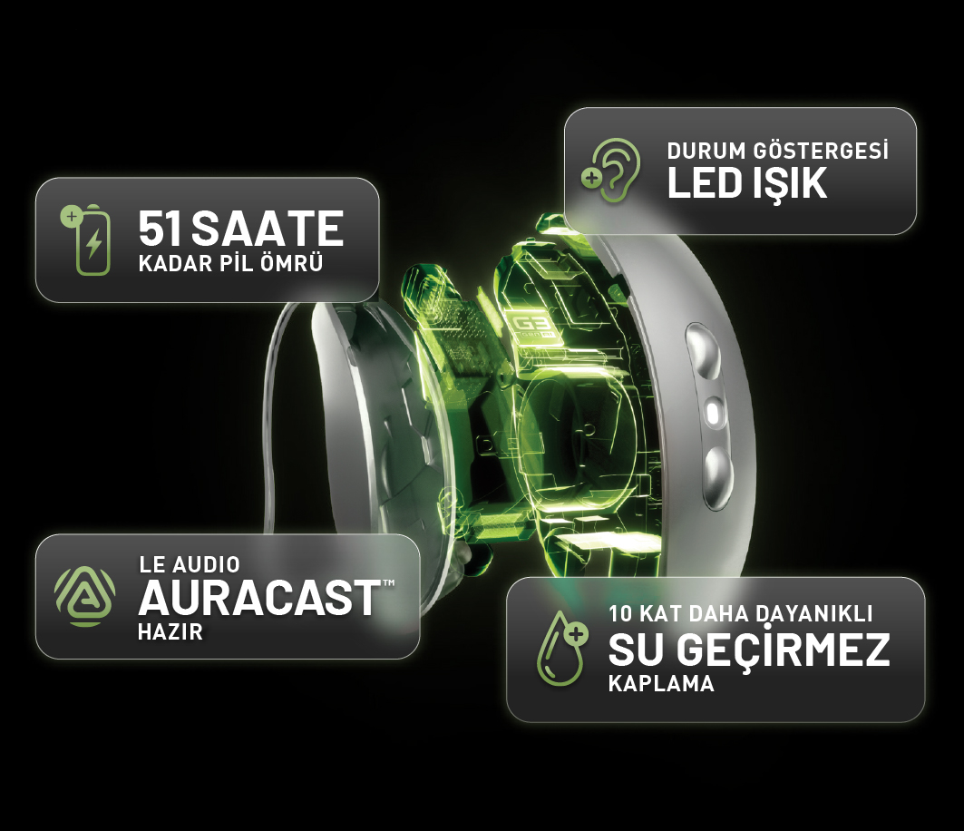 Gelişmiş işleme ve kullanıcı dostu yapay zeka, konuşmaları daha net duymanıza, mekansal farkındalığınızı korumanıza ve farklı dinleme ortamlarında kolaylıkla gezinmenize yardımcı olmak için tasarlanmıştır.